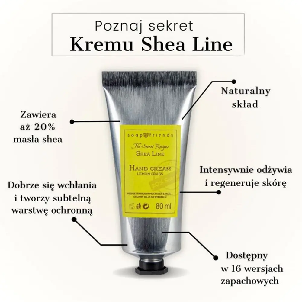 20% masła shea zapewnia intensywne nawilżenie, regenerację i ochronę skóry dłoni. Bogata formuła skutecznie pielęgnuje nawet bardzo suchą i wymagającą skórę.